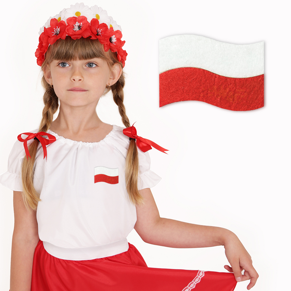 Przypinka wykonana jest z wysokiej jakości filcu, składającego się z dwóch starannie dobranych warstw: białej bazy, która zapewnia trwałość i stabilność, oraz biało-czerwonej nakładki, wiernie odwzorowującej barwy narodowe. Z tyłu znajduje się solidnie przymocowana metalowa agrafka, która umożliwia łatwe przypięcie do dowolnej tkaniny.