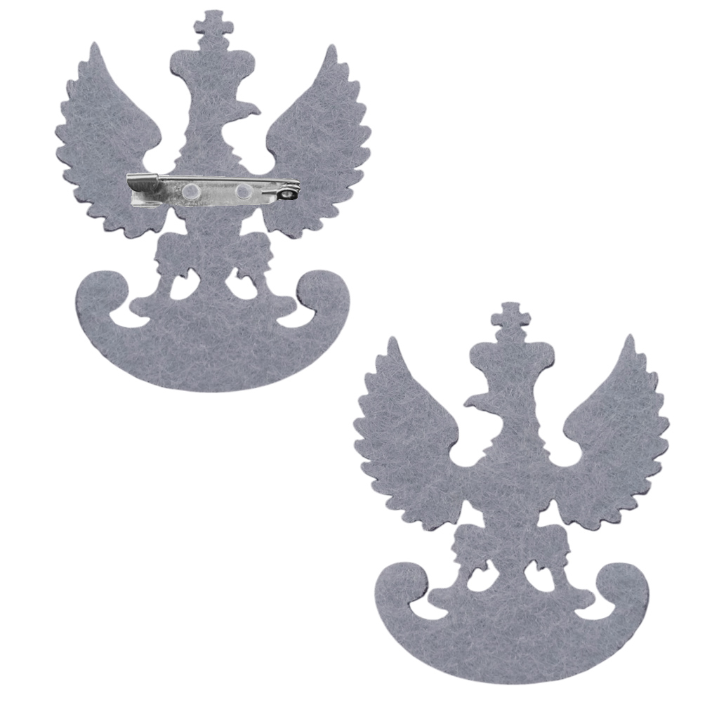 Precyzyjnie wycięta przypinka orła legionowego bez tła to minimalistyczna i elegancka ozdoba patriotyczna. Wykonana z jednej warstwy wysokiej jakości szarego filcu, charakteryzuje się dbałością o detale, takie jak korona czy rozłożyste skrzydła. Brak dodatkowej bazy sprawia, że orzełek prezentuje się wyjątkowo lekko i naturalnie wtapia się w strukturę materiału, na którym zostanie umieszczony. Z tyłu znajduje się solidnie przymocowana metalowa agrafka, która umożliwia łatwe przypięcie do dowolnej tkaniny.