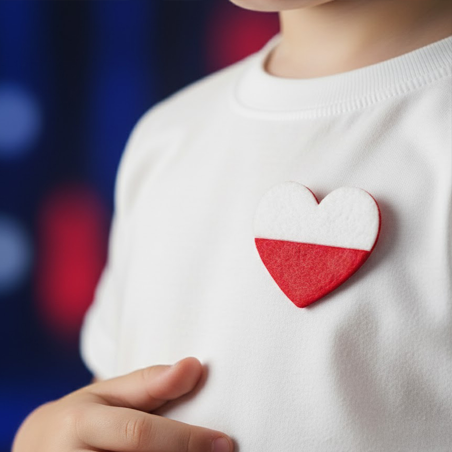 Dodaj patriotyczny akcent do swojej stylizacji! Filcowa przypinka serce z flagą Polski to doskonały element dekoracyjny, który możesz przypiąć do ubrania, torby, plecaka czy innych akcesoriów, podkreślając swój styl i narodową tożsamość!