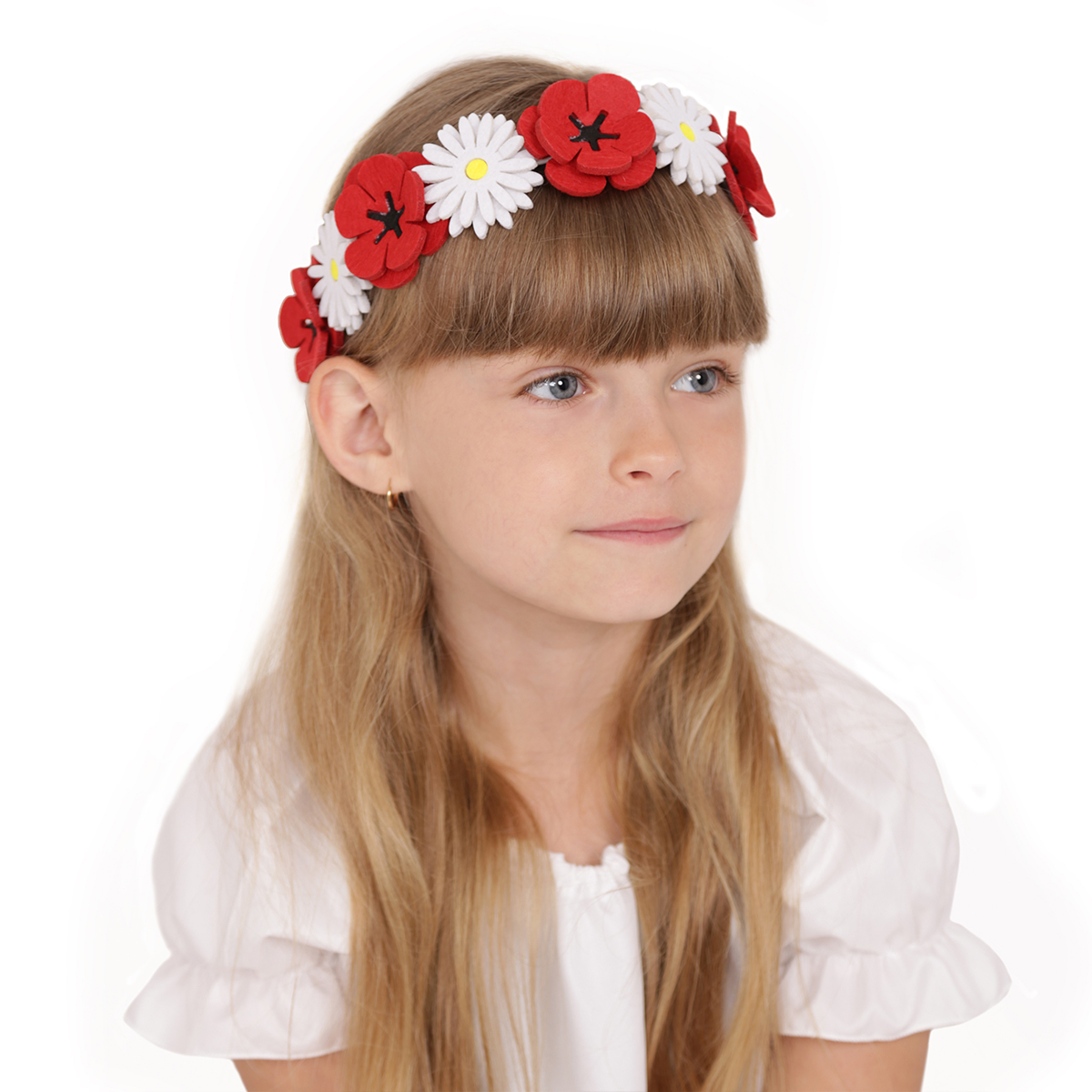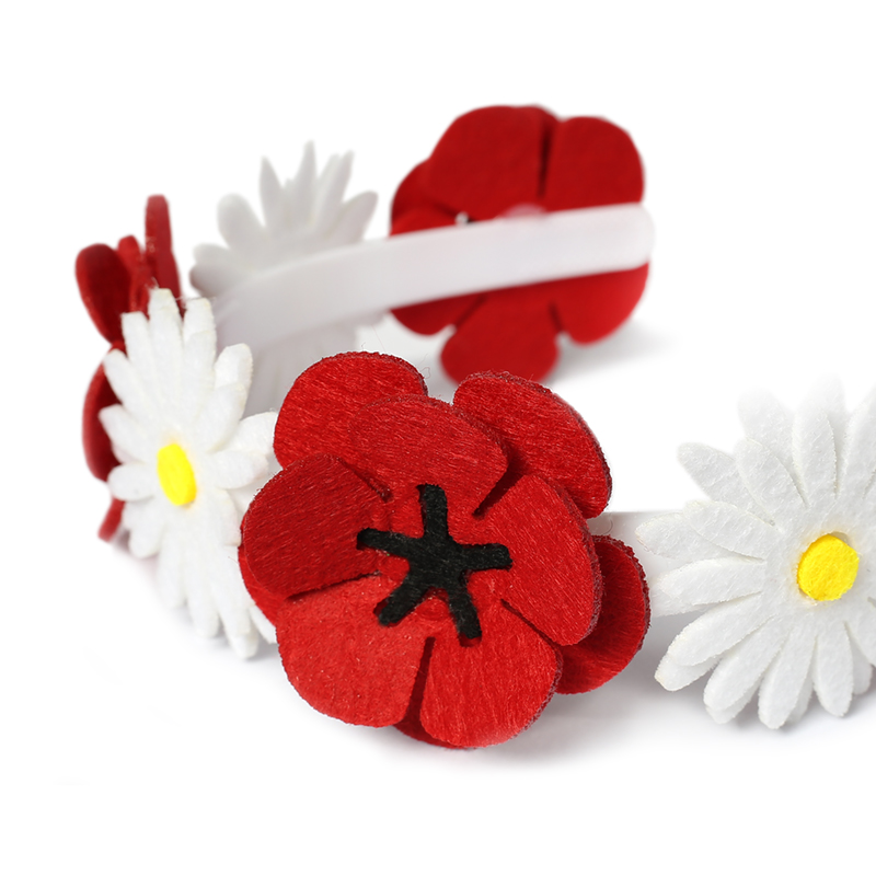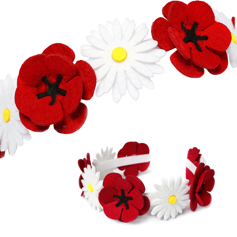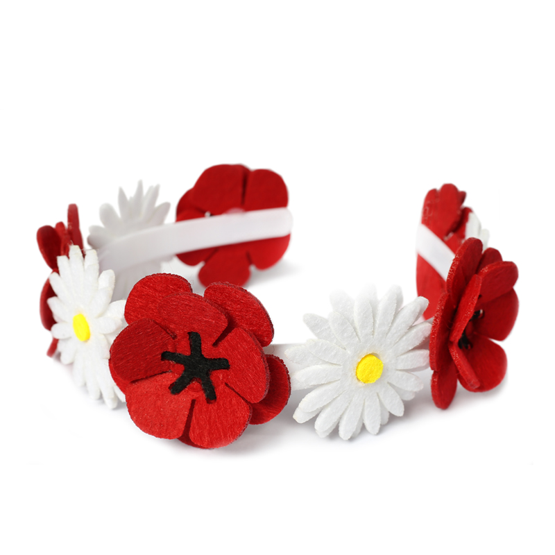 wykonany z filcowych maków i stokrotek
