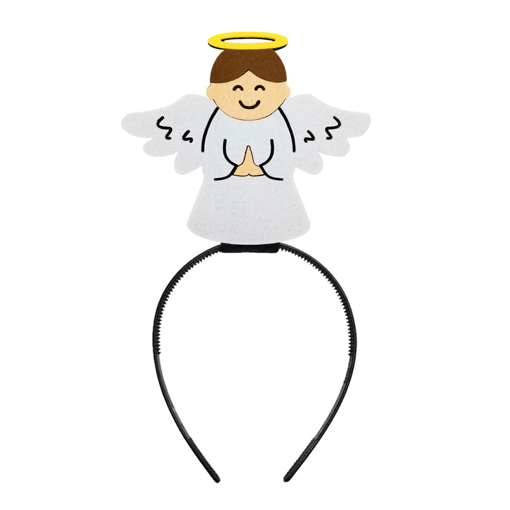 - opaska aniołka złożona z dwóch rozdzielnych elementów: plastikowej opaski oraz filcowego emblematu chłopięcego aniołka w brązowych włosach